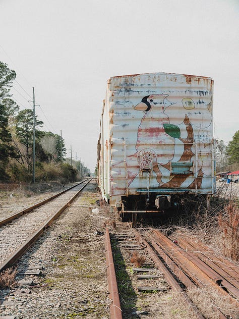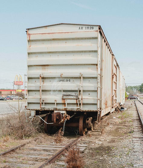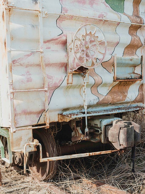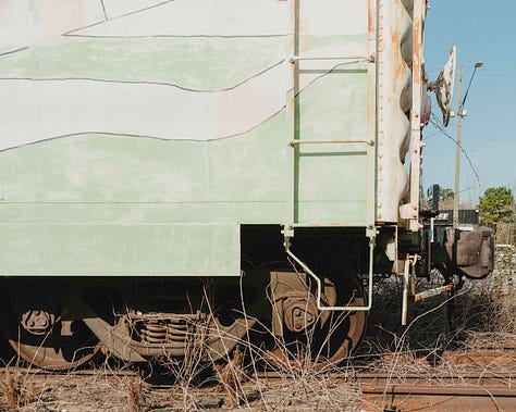 Faded artwork, creeping vines, rust. It is quite impossible to miss this abandoned railroad car that sits at the intersection of South Reilly and Cliffdale Road. Similar to my photograph of Smitty’s Cleaners, I consider this car a landmark in its own right, and had always been intriguing to me as photographic subject matter. As matter of fact, this is not the first time I documented this car. Here are some of my photos from February 2023: